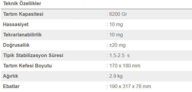– 18 farklı birimde tartım (1 adet kullanıcı tanımlı birim)