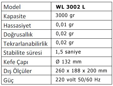 - Harici Kalibrasyon ağırlığı ile teslim